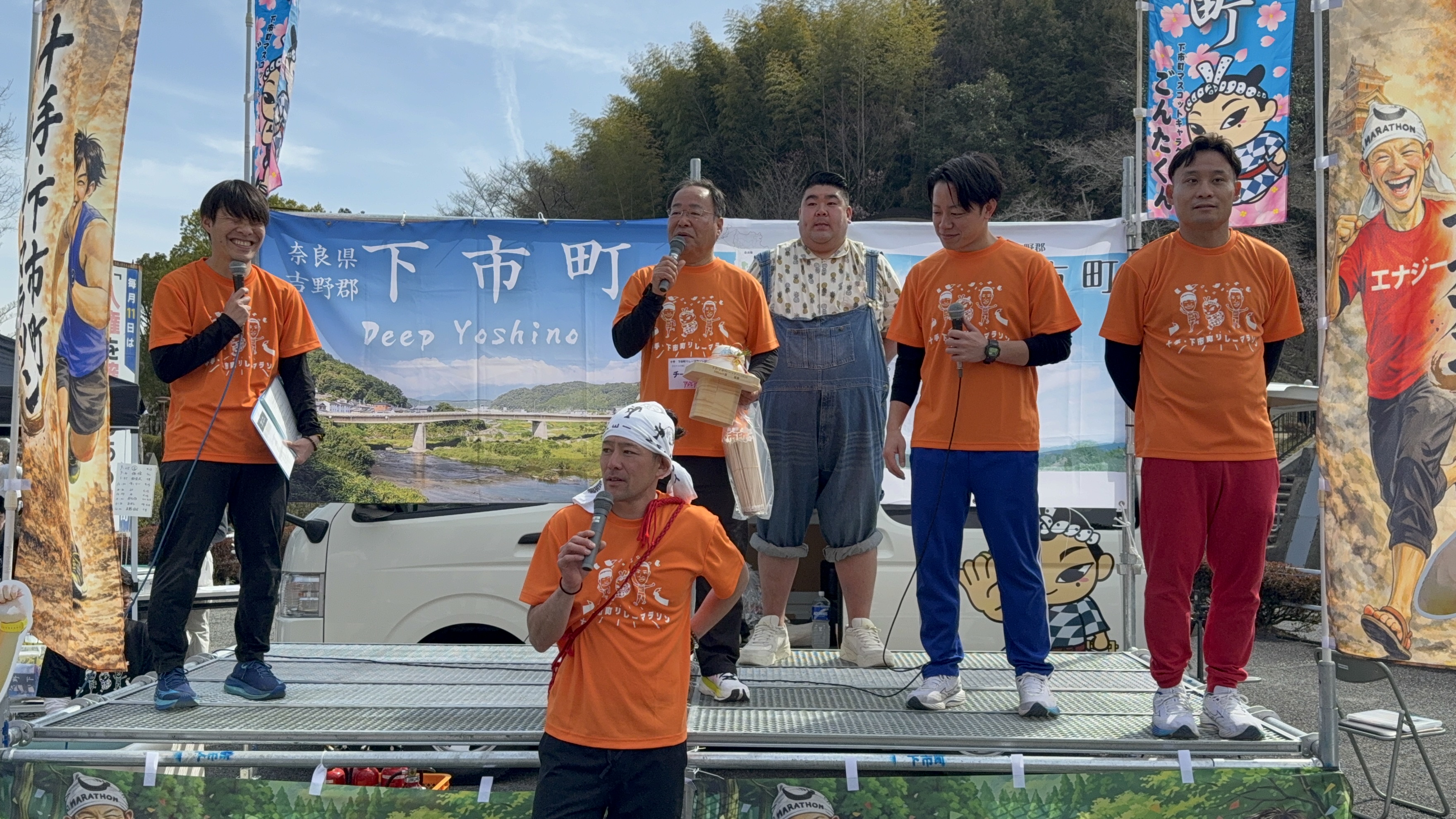 今までの活動もあり、下市町出身ではない、エナジー西手も下市町の景観・環境・そして、人々の良さを実感したこともあり、何かこの下市町内で自分たちが観光大使として、盛り上げること・活性化することができないか模索していたところ、マラソン芸人として、数々のマラソン大会に参加もしていたことで、マラソン大会を通じて、下市町を盛り上げる・活性化することができないかと思いつきました。